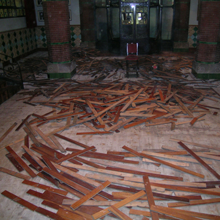 Restauració d’aquesta petita sala de concerts ubicada dins del Palau de la Música Catalana, on hem realitzat els treballs de: